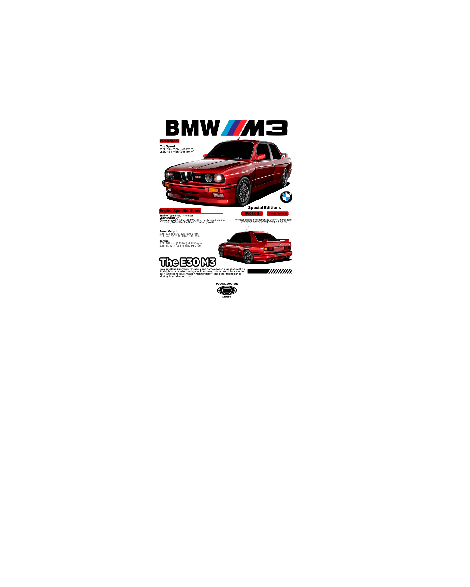 Bmw E30 M3 V2 T-shirt (Various Colors and Sizes)