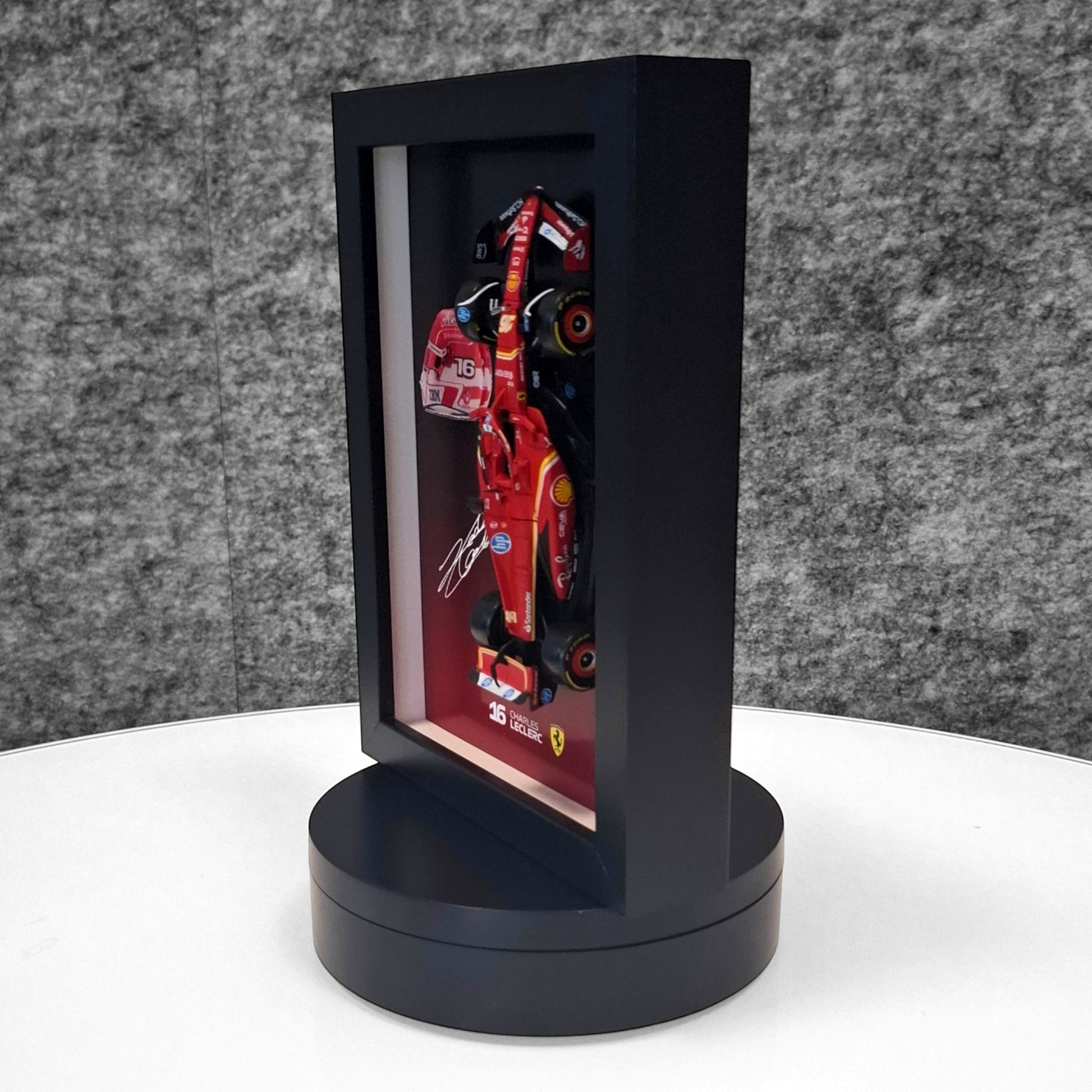 Charles Leclerc F1 okvir s Ferrari (1:43) modelom - 3D kaciga i potpis
