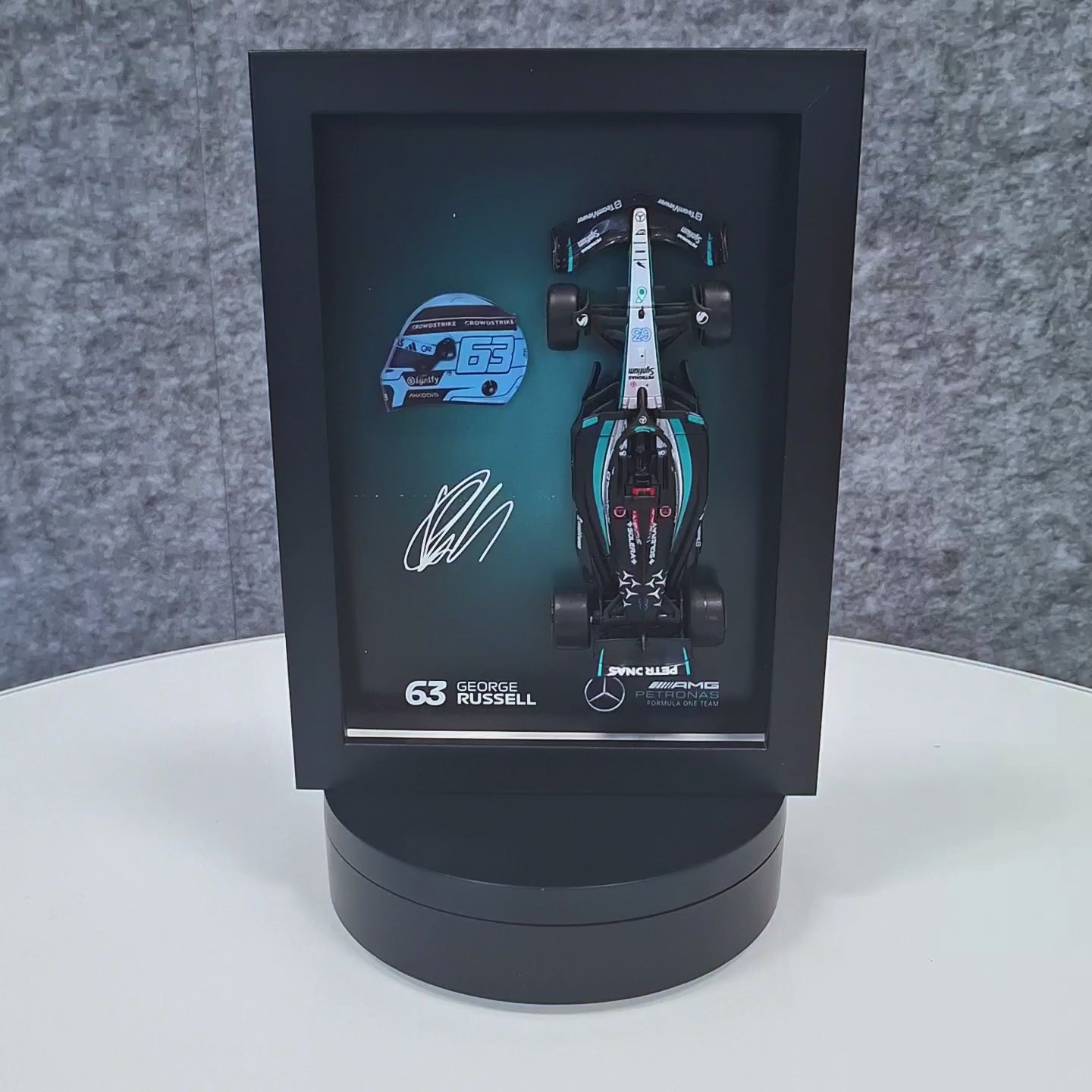 George Russell F1 okvir s AMG (1:43) modelom - 3D kaciga i potpis